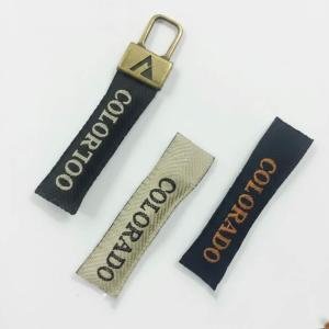 Highquality zipper puller made from cotton stuffed woven labels. Features an autolock design and printed technics, suitable for garments and clothing. Available in multiple sizes.