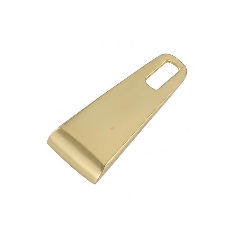 This custom metal puller is crafted from durable zinc alloy with a gold‑plated finish. Designed as a decorative clothing accessory, it adds both functionality and stylish appeal to garments. Strong, nickel‑free, and washable, it combines durability with premium design, making it ideal for fashion applications.