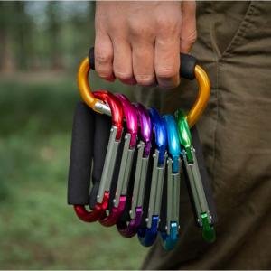 Crafted from high‑strength aluminum alloy, this extra‑large D‑ring snap spring hook is designed for durability and convenience. Featuring a threaded rotation lock and anodized surface treatment for scratch and fade resistance, it is ideal for climbing, backpacks, keychains, and everyday carrying needs. With multi‑color options and foam grip, it ensures secure fastening and comfortable use.