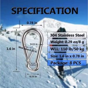 This heavy-duty spring snap hook is made from polished 304 stainless steel, ensuring long-lasting durability and corrosion resistance. Ideal for heavy industry applications, it offers a secure link for keys, chains, and clamps. Its compact design and robust construction make it perfect for demanding industrial environments.
