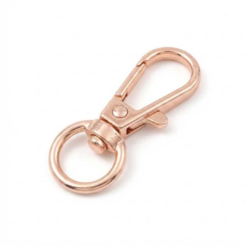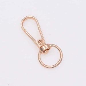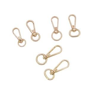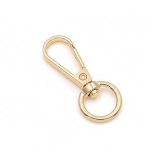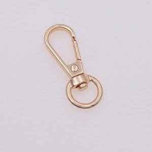 This low-price swivel snap hook is made from durable zinc alloy metal. Designed for bags, buckles, and fashion accessories, it features a spring-loaded carabiner trigger for secure fastening. Lightweight, stylish, and customizable, it is ideal for DIY projects, handbags, backpacks, and other bag hardware applications.