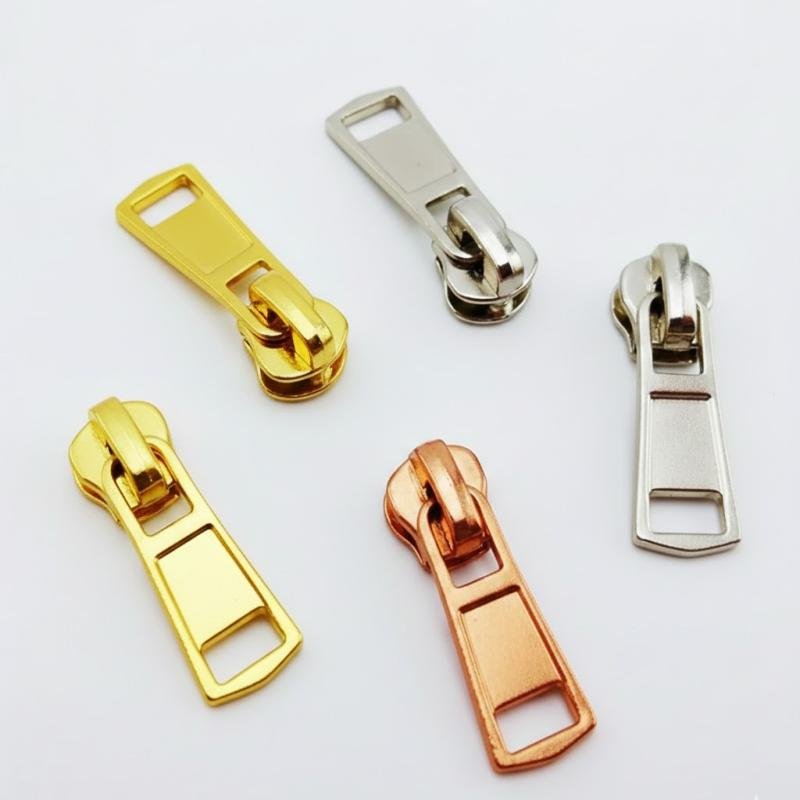 This metal zipper slider puller is made from durable brass with plating finish. Designed for garments, bags, shoes, and other fashion items, it features an auto lock mechanism for secure fastening. Nickel‑free and customizable in size, it is ideal for fashion and commercial applications.