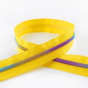 5# nylon long chain zipper designed for smooth operation and custom cutting, suitable for bulk supply and DIY sewing applications.