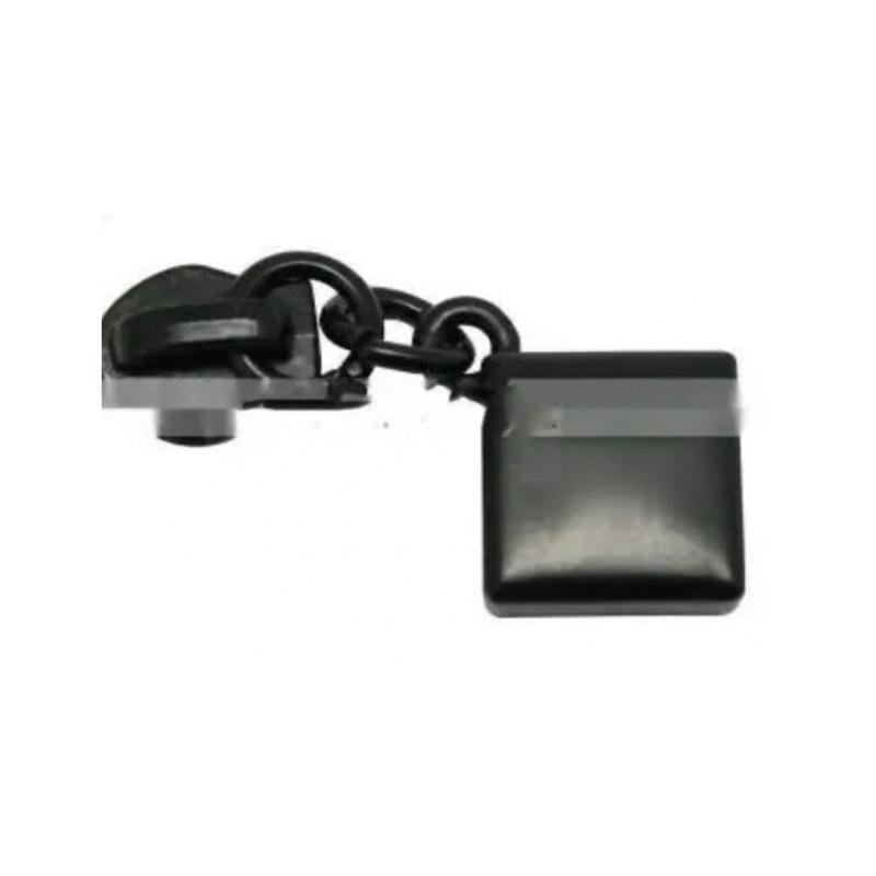 Black leather zipper puller combined with a metal slider, designed with durable zinc alloy construction and smooth autolock performance for premium zipper hardware.