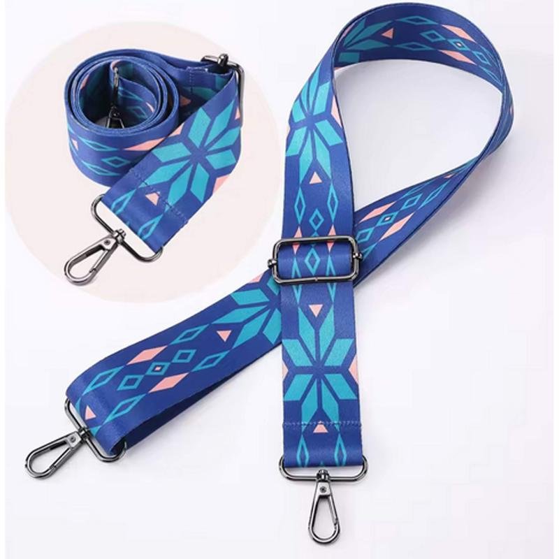 Designed for style and durability, this wide shoulder strap is crafted from thick polyester with thermal transfer printing. Featuring a strong metal hook and customizable size, color, and logo options, it serves as a versatile replacement strap for handbags, crossbody bags, and luggage accessories.