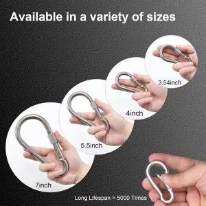 This heavy-duty 304 stainless steel carabiner snap hook is made from durable stainless steel with a polished finish. Designed for outdoor camping, automotive, and industrial applications, it features a secure screw-locking mechanism with swivel snap for safe and reliable fastening. Strong, corrosion-resistant, and compact, it is ideal for outdoor gear, tools, and everyday utility use.