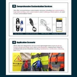 Scqp Industrial Safety Glove Holder Clips – Plastic & Metal Carabiner for Work Gloves, Customizable Colors