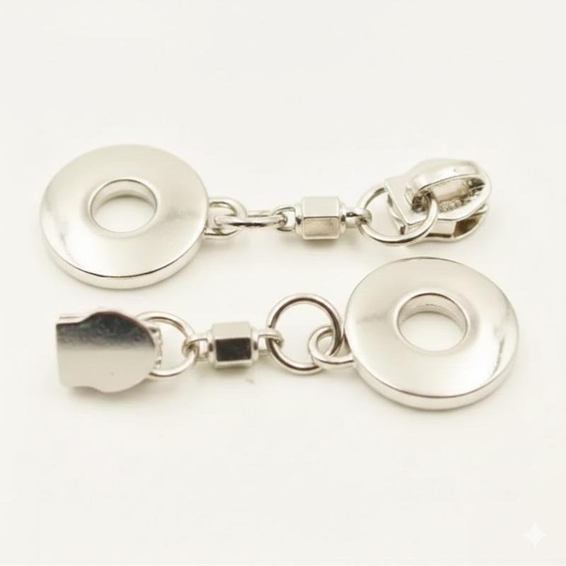 This zipper slider is crafted from durable zinc alloy with a plated finish. Featuring a round ring puller and non‑lock design, it ensures smooth functionality for coats, garments, and fashion accessories. Nickel‑free and washable, it combines durability with stylish appeal, making it a versatile choice for clothing applications.